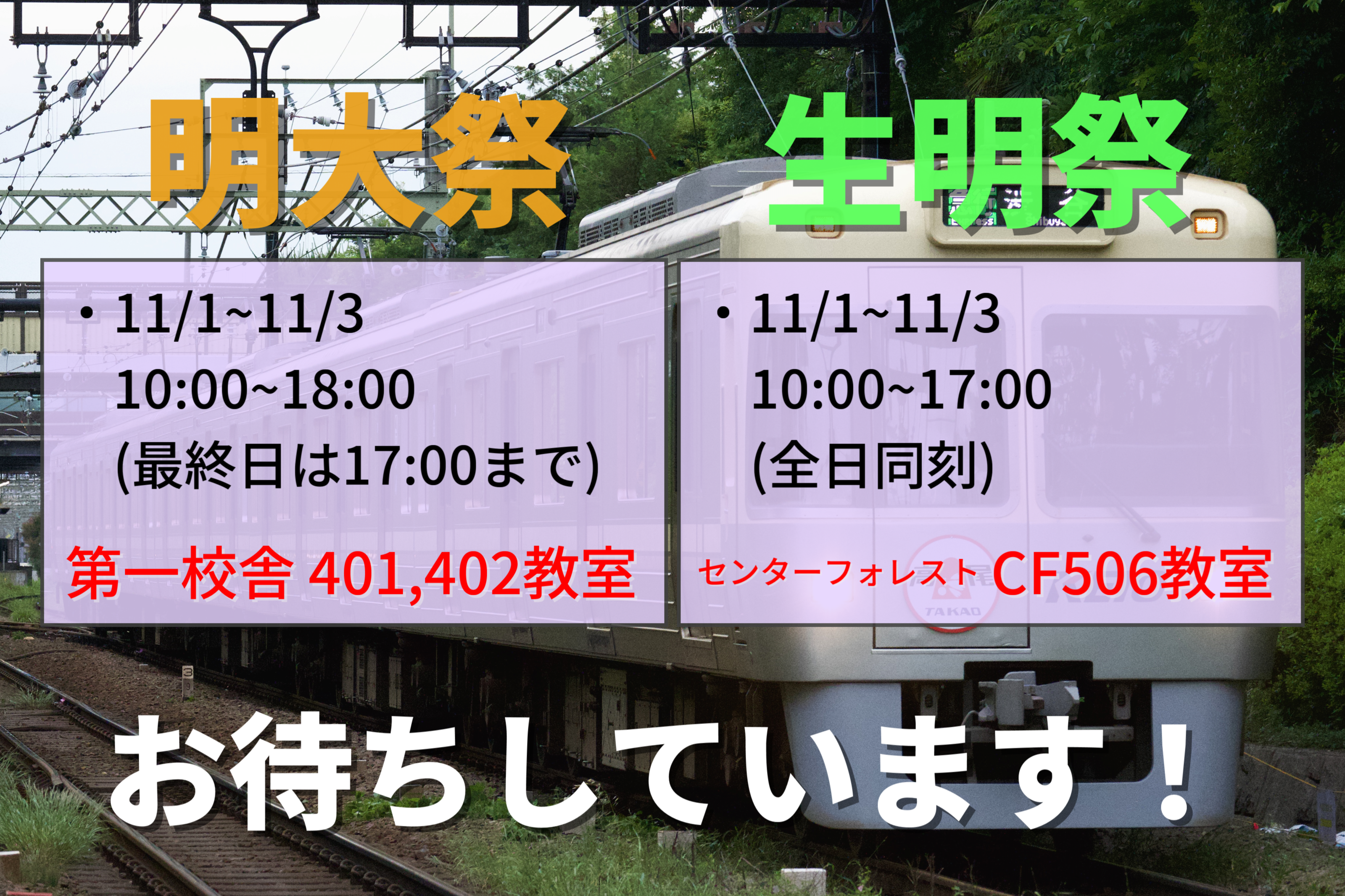 明治大学鉄道研究会は、11月1日~3日に行われる第141回明大祭・生明祭に参加します!