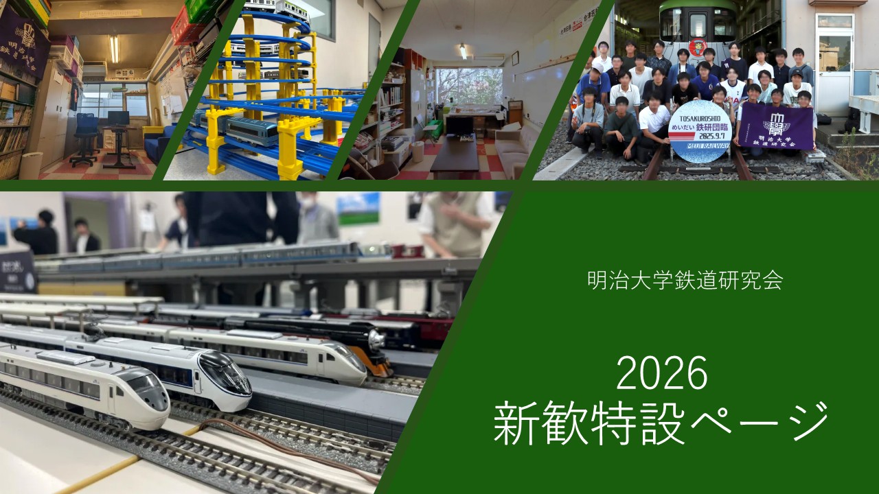 明治大学鉄道研究会は、「人文・社会グループ」に属する明治大学の公認サークルです。1964年の創立以来60年以上の歴史を持ち、2024年6月現在80名程度が所属しています。