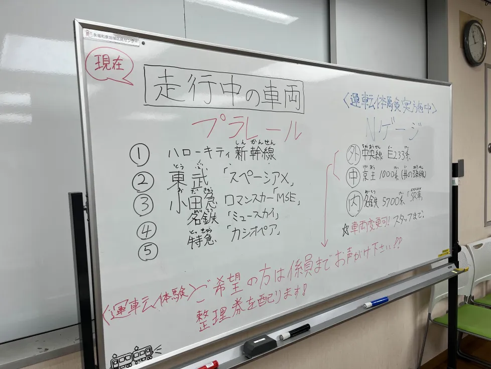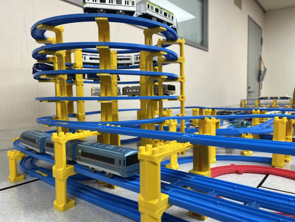 当日はあいにくの雪でしたが、会場ではプラレールの展示やNゲージの運転体験などを催し、大好評を得ました。